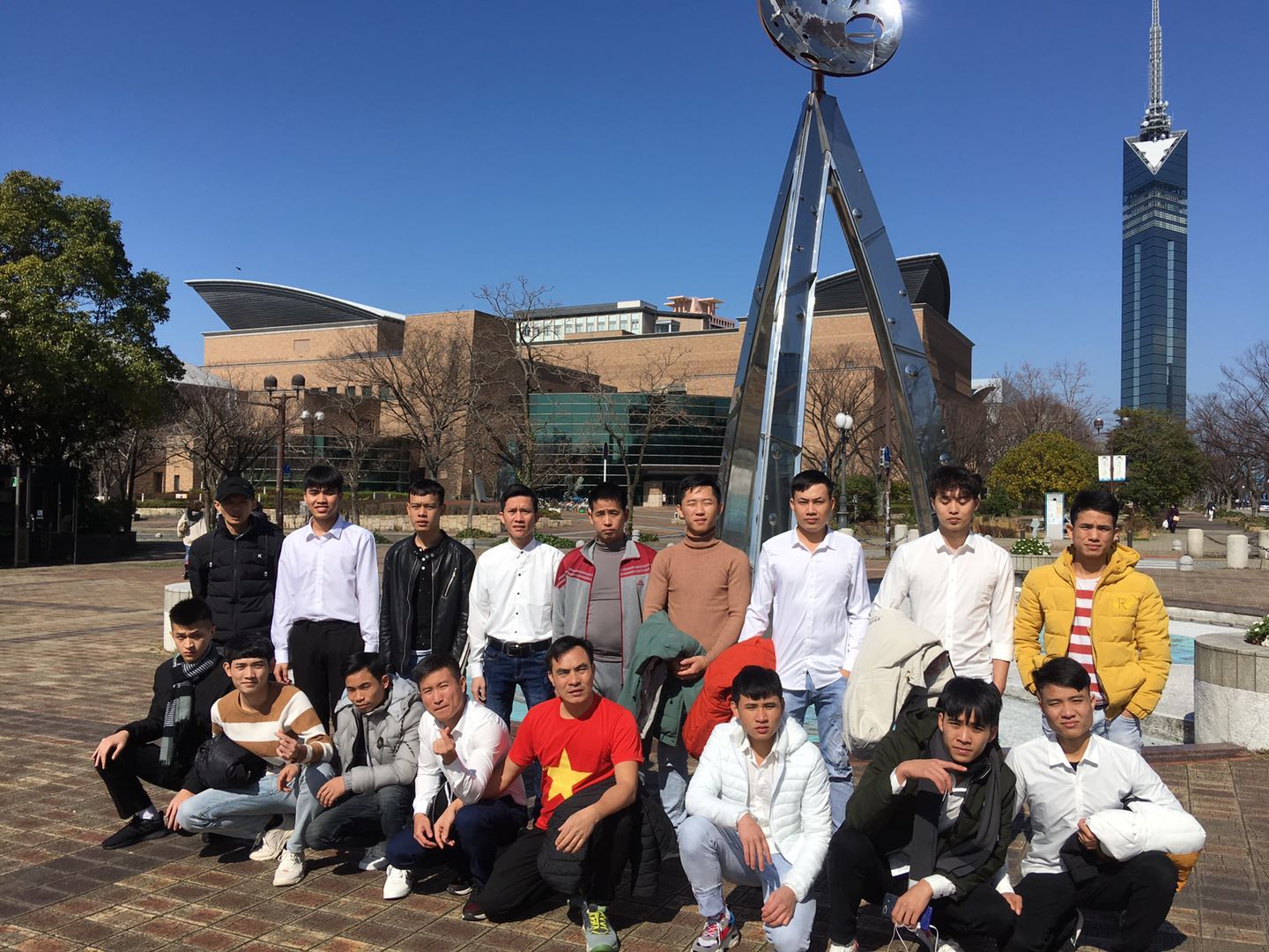 福岡タワーをバックに